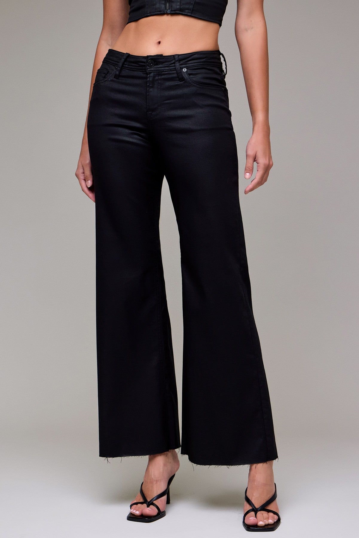 Camille Black Coated Wide Leg Jeans